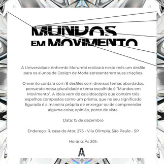 Criativos vão invadir a VO para o desfile de encerramento do semestre do curso Design de Moda com a temática MUNDOS EM MOVIMENTOS.
